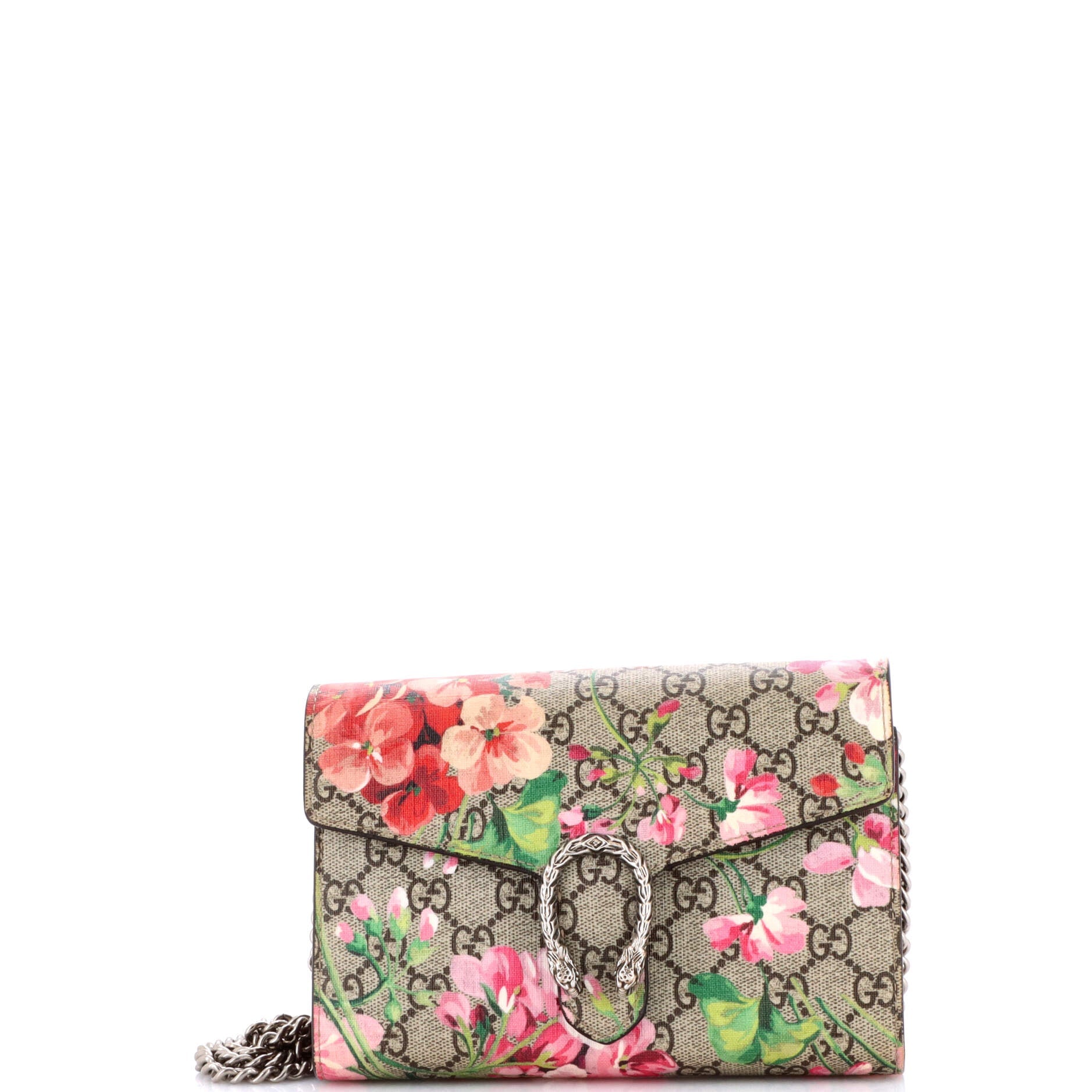 Dionysus Chain Wallet Blooms Print GG Coated Canvas Small