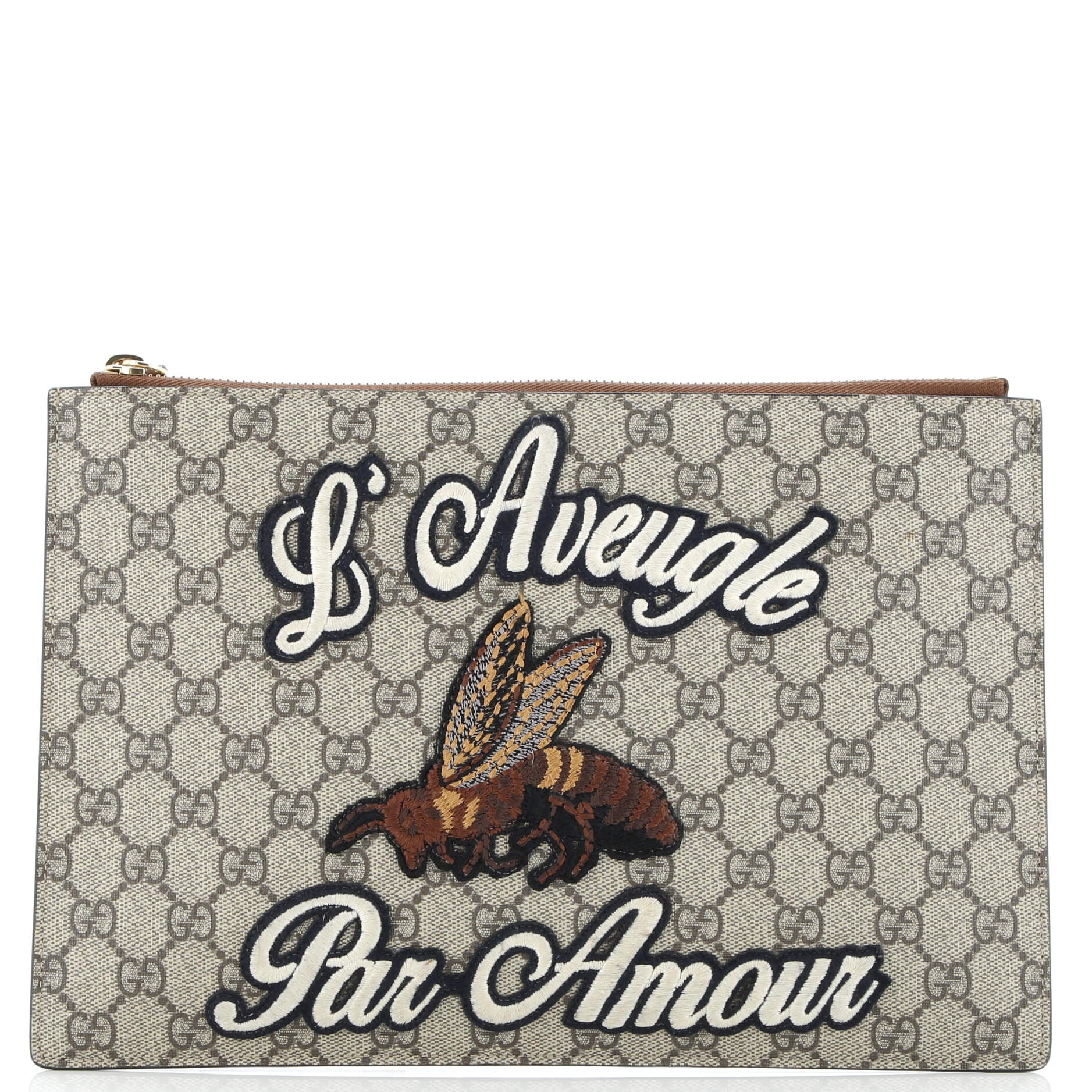 Model: Zipped Pouch Leather with Applique Large