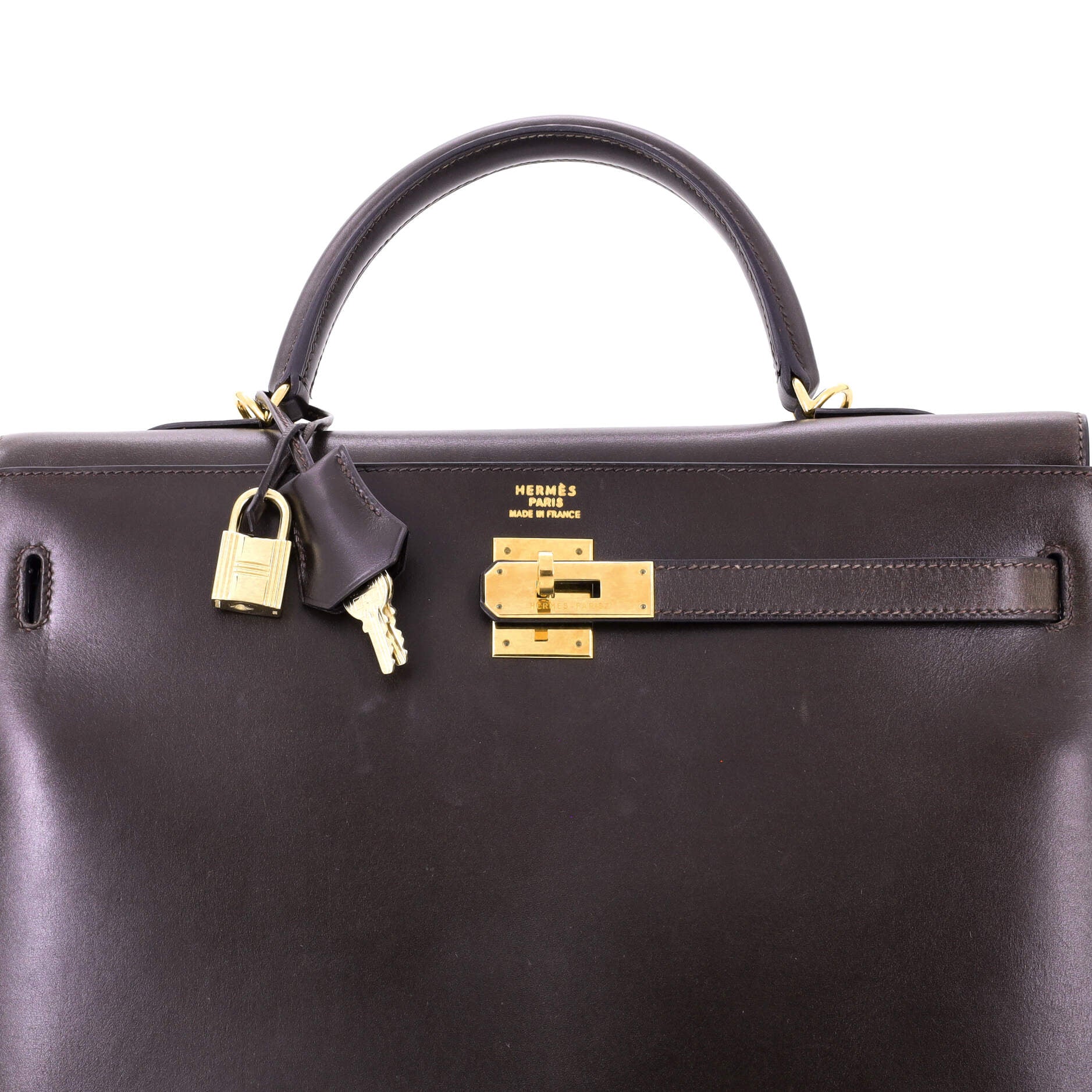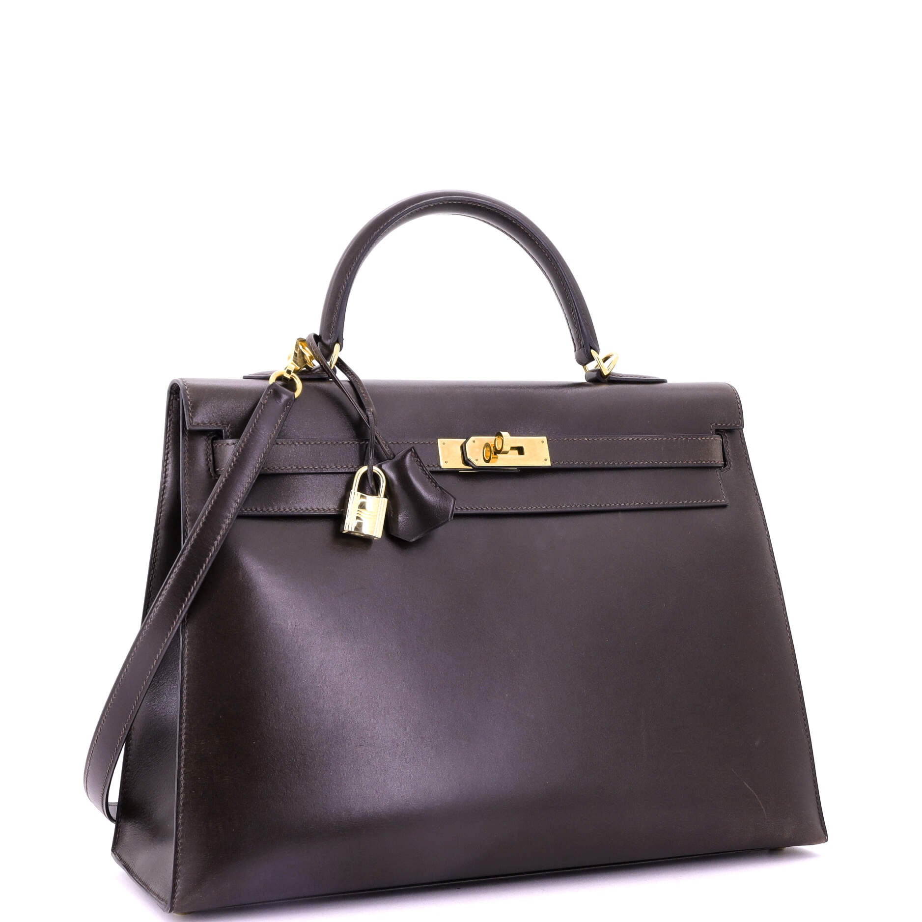 Model: Kelly Handbag Ebene Box Calf with Gold Hardware 35