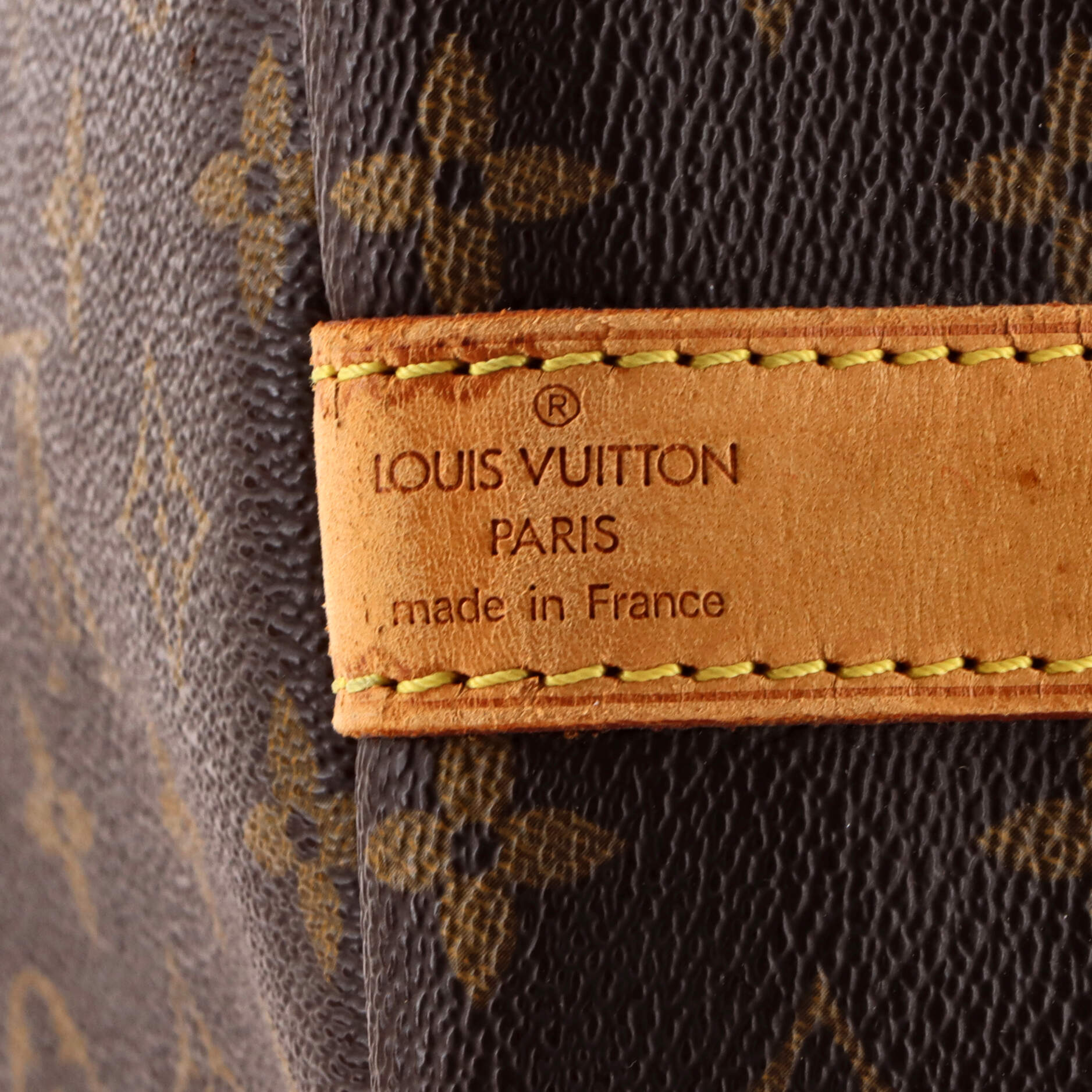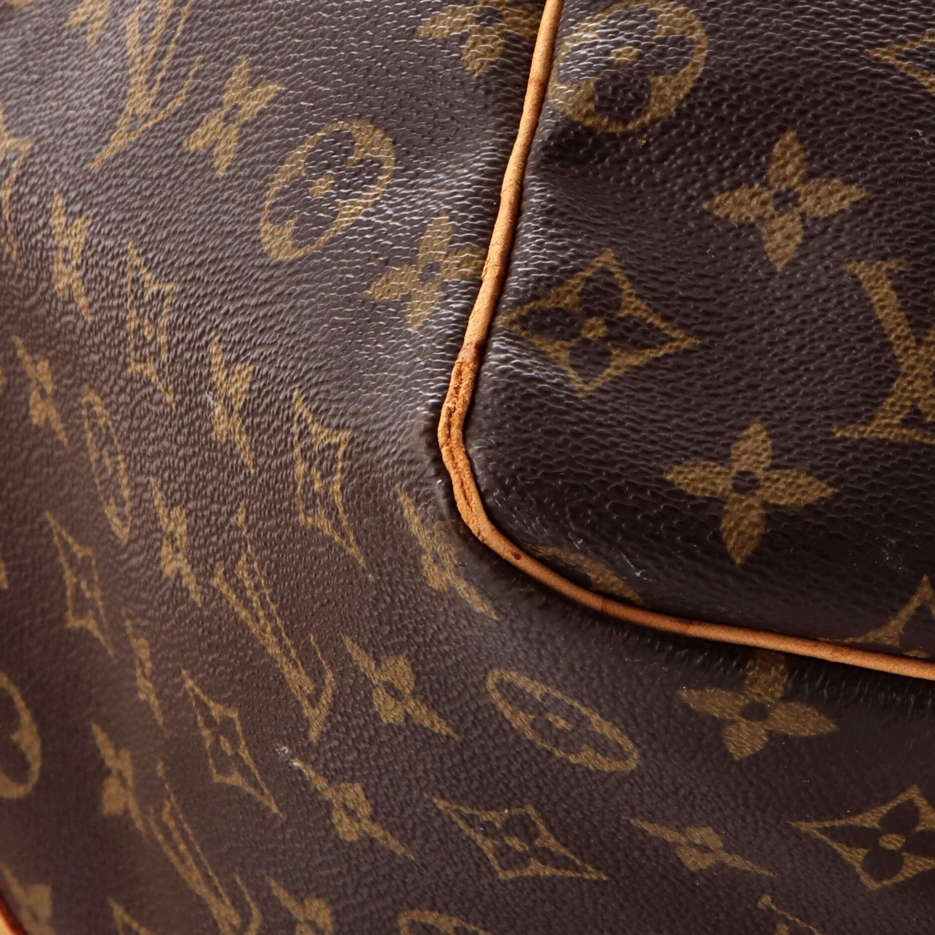 Condition: Fair. Exterior: water stains and cracking on leather trims, corner wear, creases, discoloration, minor edge wear, minor scuffs | Handles/Straps: water stains, heavy cracking, discoloration | Interior: stains, minor scuffs | Hardware: scratches