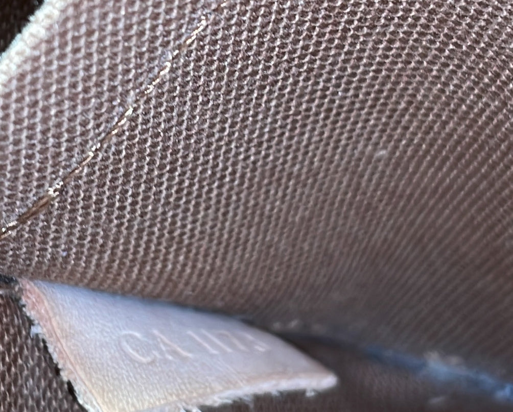 Condition: Good. Exterior: corner wear, edge wear, creases, scuffs | Handles/Straps: creases, scuffs, discoloration, cracking | Interior: moderate odor, discoloration, scuffs, minor stains | Hardware: heavy tarnished, scratches