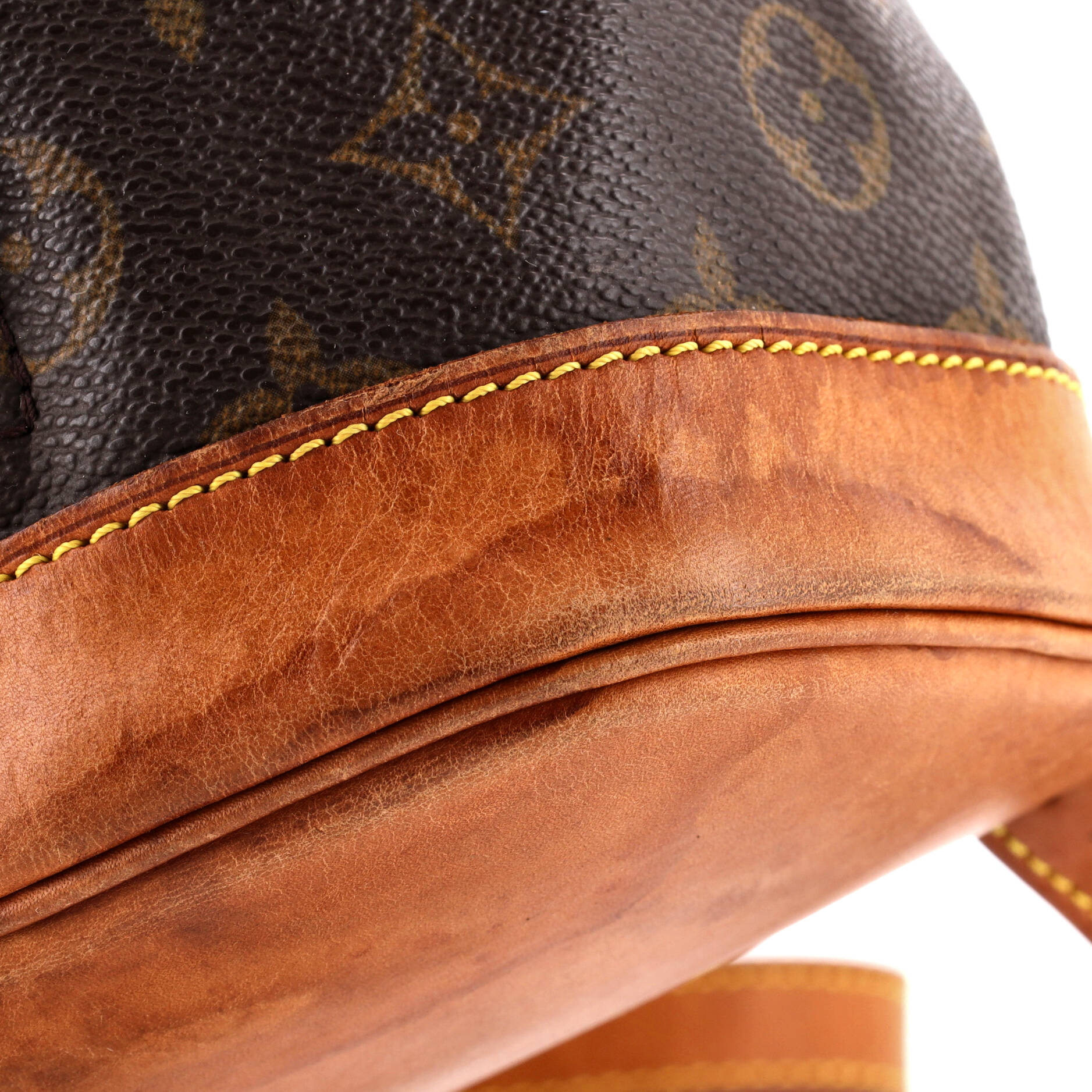 Condition: Fair. Exterior: corner wear, edge wear, creases, scuffs, stains, discoloration, minor cracking | Handles/Straps: creases, scuffs, discoloration, cracking | Interior: moderate odor, discoloration, scuffs, stains | Hardware: scratches, tarnished