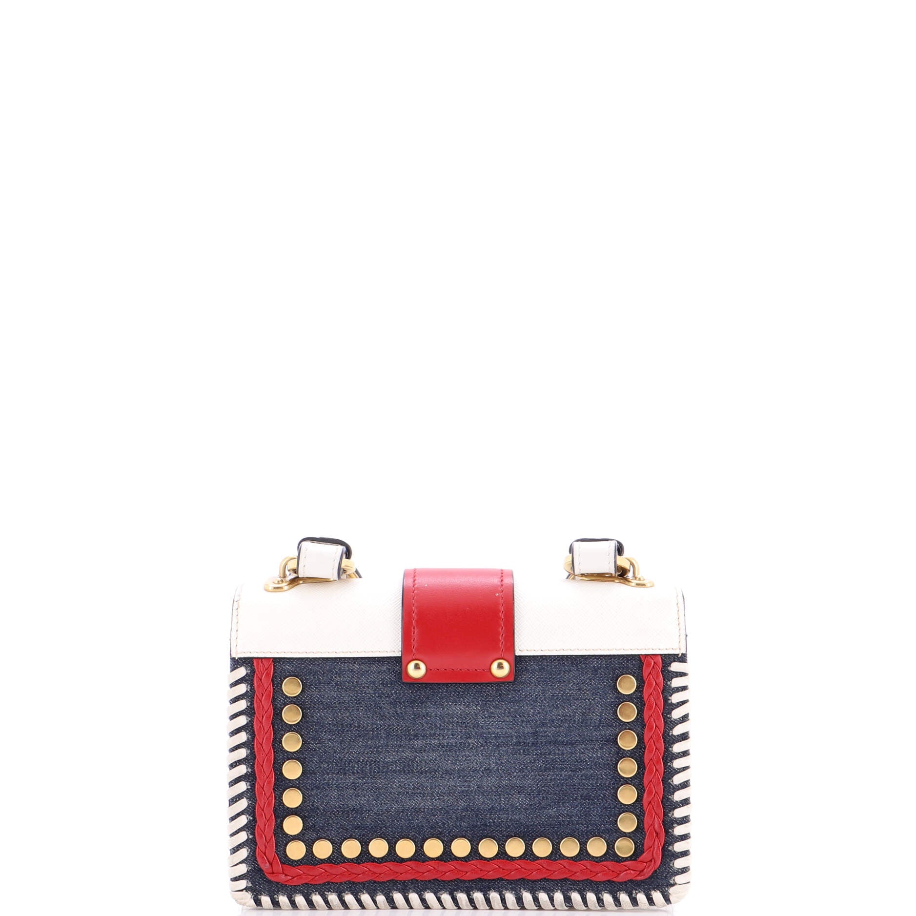 Model: Cahier Crossbody Bag Embellished Denim and Leather Small