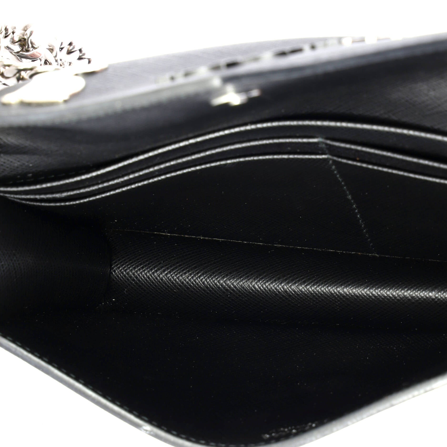 Model: Monochrome Wallet on Chain Embellished Saffiano Leather Small