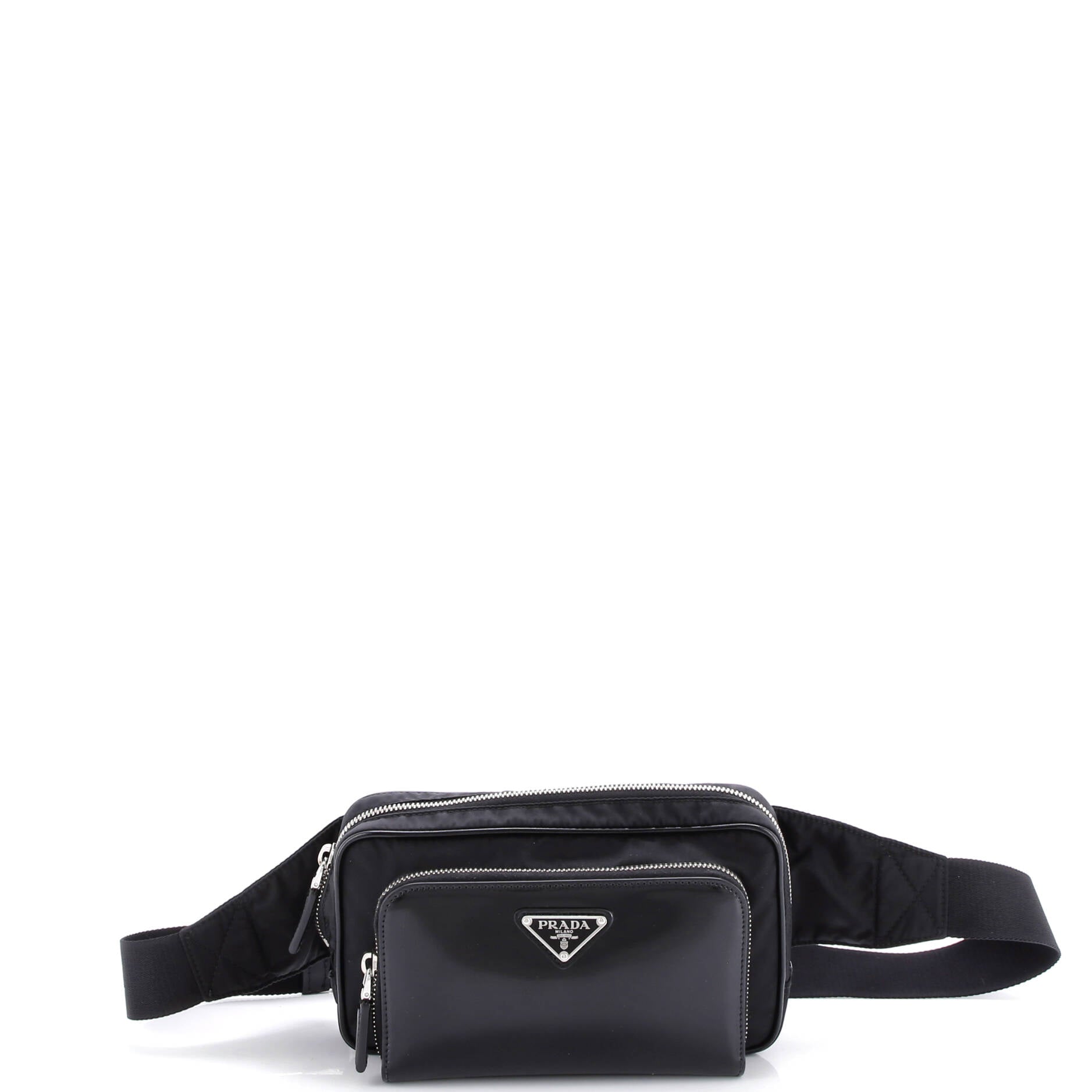 Model: Zip Around Front Pocket Belt Bag Re-Nylon with Leather