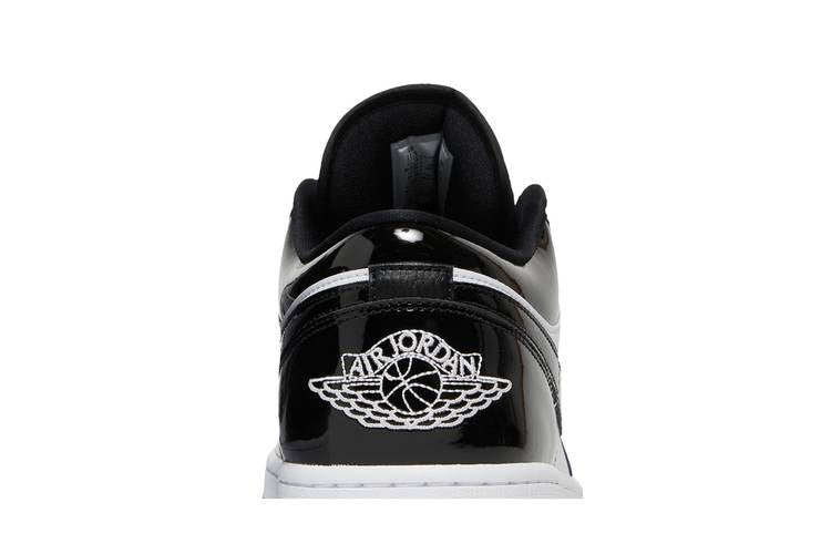 The Jordan 1 Low SE Concord features a combination of black patent leather and white leather uppers, inspired by the classic Air Jordan 11 Concord. The sneakers also include a translucent blue outsole and a white Air Jordan Wings logo on the heel. Released on January 17, 2023.