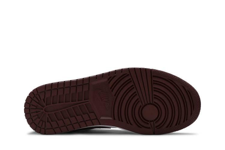 The women's Air Jordan 1 Low 'Bronze Eclipse' boasts a leather upper with a white base and burgundy overlays on forefoot, collar, and heel. Accentuated with '23' lace keepers, a Jumpman icon on the tongue, and a Wings logo on the heel. It features a rubber cupsole with a heel-encapsulated Nike Air unit for cushioning and stability. Designed for style and comfort, the low-profile silhouette combines elegance with athletic appeal.