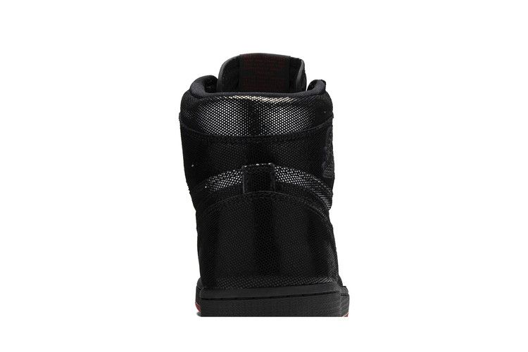 The Jordan 1 Retro High SP Gina features a black upper with a matching Nike Swoosh and midsole, contrasted by a red outsole. Released in May 2019, the Jordan 1 Retro High SP Gina is available now at Side Kicks.
