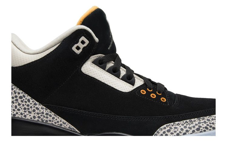 The Jordan 3 Retro & Nike Air Max 1 Atmos Pack is a limited-edition collaboration featuring two silhouettes with Atmos elephant print. The Air Jordan 3 Retro has a black tumbled leather upper, Jumpman logo on the left tongue, and Nike Air branding on the heel. The right shoe displays Swooshes on both sides. Both models include a visible Air unit for impact absorption. Released on March 18, 2017, the Jordan 3 Retro & Nike Air Max 1 Atmos Pack is available now at Side Kicks.