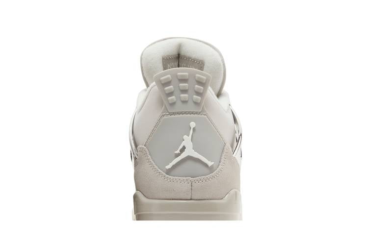 The Women’s Air Jordan 4 Retro ‘Frozen Moments’ showcases a pale grey suede upper with a glossy leather forefoot overlay. Featuring breathable netting on the throat and quarter panel, metallic silver molded eyelets and support wings, and tonal Jumpman branding on the tongue and molded heel tab. Completed with a grey foam midsole and visible Air-sole cushioning in the heel, this sneaker debuted on August 26, 2023, in a color palette of light iron ore, sail-neutral grey, black, and metallic silver.