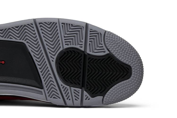 The Air Jordan 4 Retro Toro Bravo features a Fire Red nubuck upper with black and white detailing, cement grey accents, and visible Air-units in the midsole. Released in July 2013, this sneaker draws inspiration from the iconic 'Raging Bull Red Suede' colorway of the Air Jordan 5 Retro. The design showcases a blend of four dominant colors: cement grey, fire red, white, and black, creating a bold and classic look.