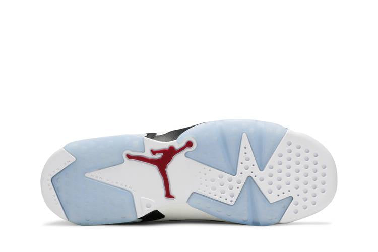 The Air Jordan 6 Retro Carmine (2021) (GS) is a mid-top sneaker designed for big kids, featuring red synthetic nubuck and white leather overlays on the upper. The shoe includes Nike Air branding, a polyurethane midsole with visible Air sole unit, and an icy translucent rubber outsole for added durability and style. This grade school shoe combines a White/Carmine/Black colorway with detailed design elements like a carmine lace lock, Jumpman icons, and logos, providing a classic yet contemporary look. It was released on February 13, 2021.
