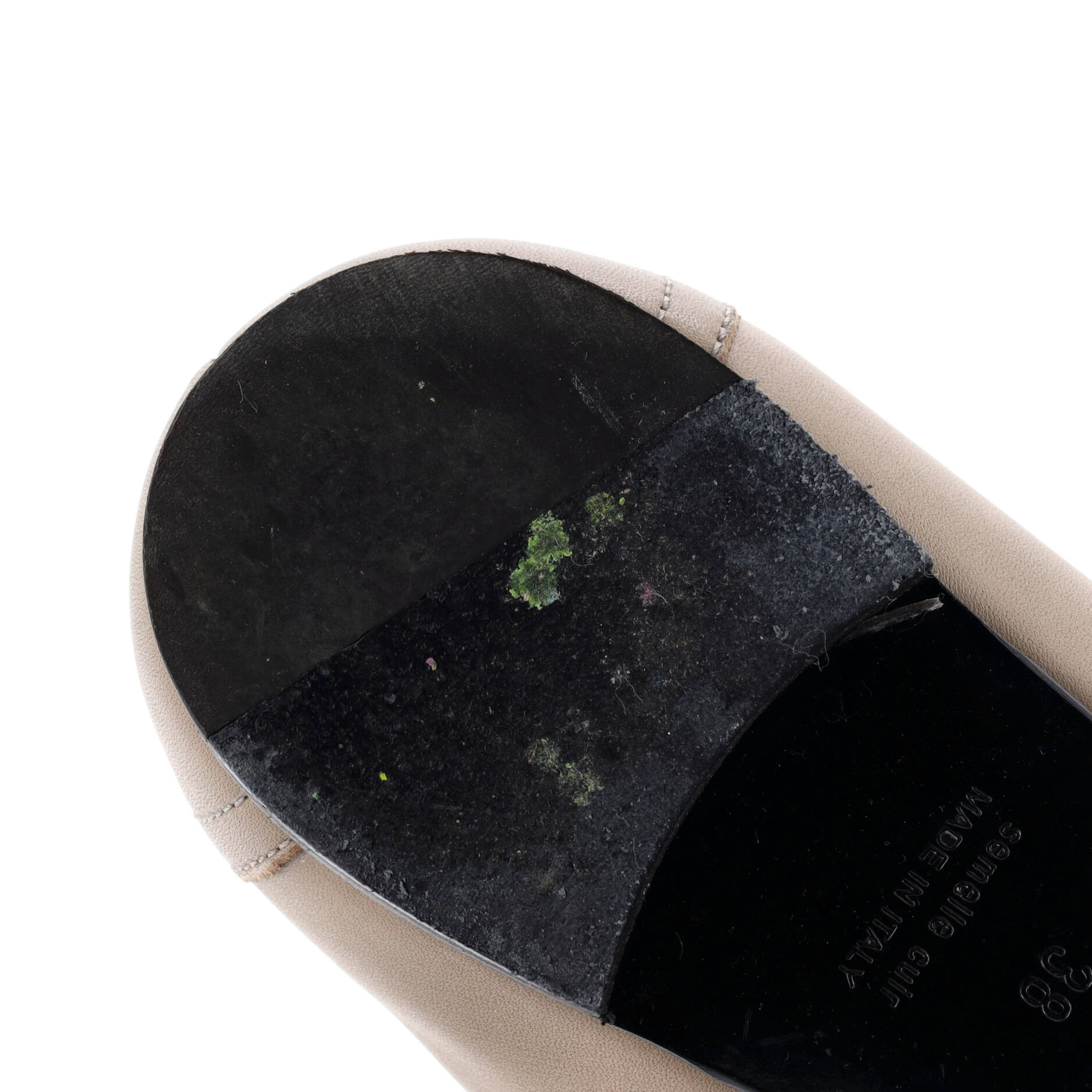 Condition: Very good. Odor in interior. Creasing and scuffs throughout, discoloration and marks in interior, light lifting on insoles, peeling, stains, moderate discoloration and scuffs on outer soles, scratches on hardware.