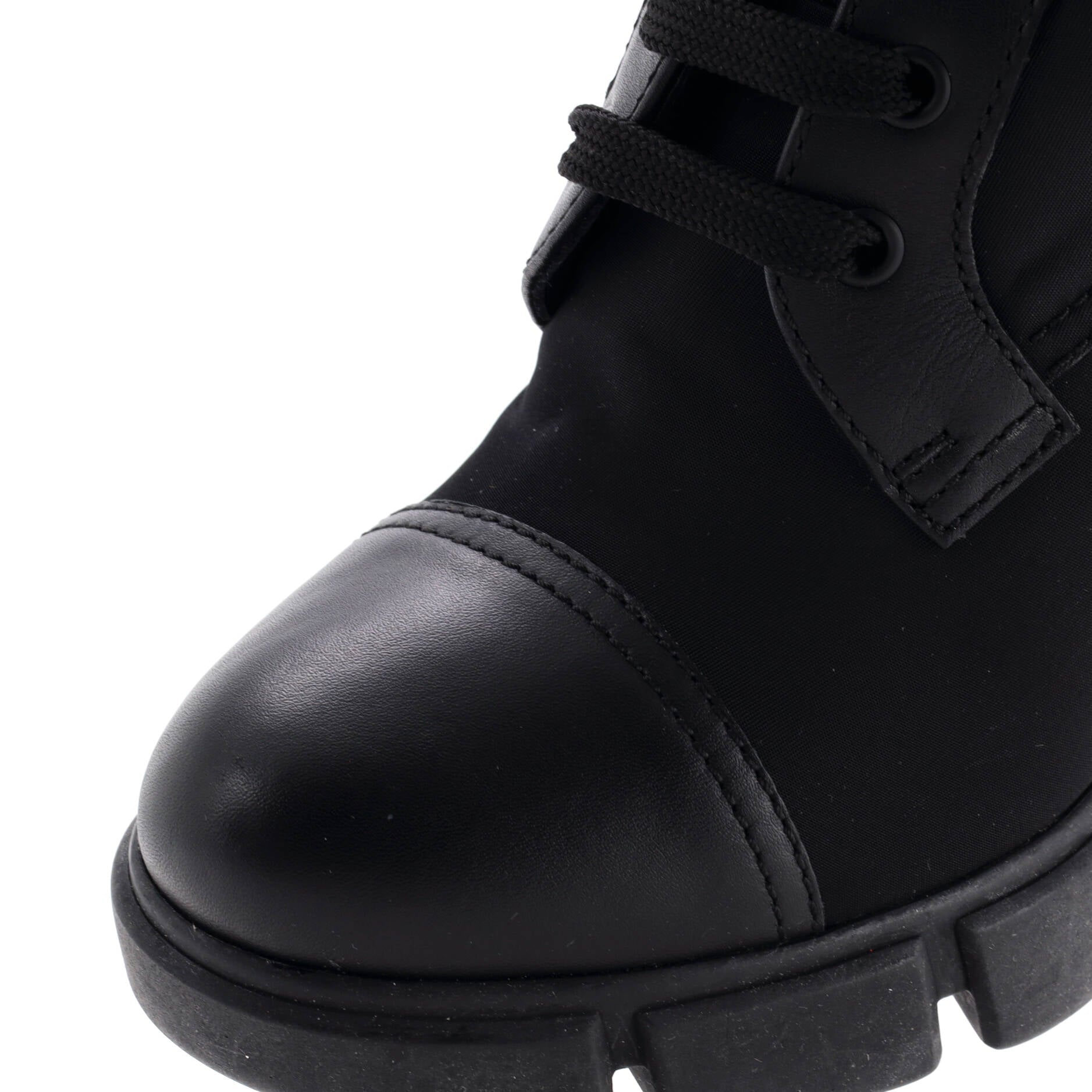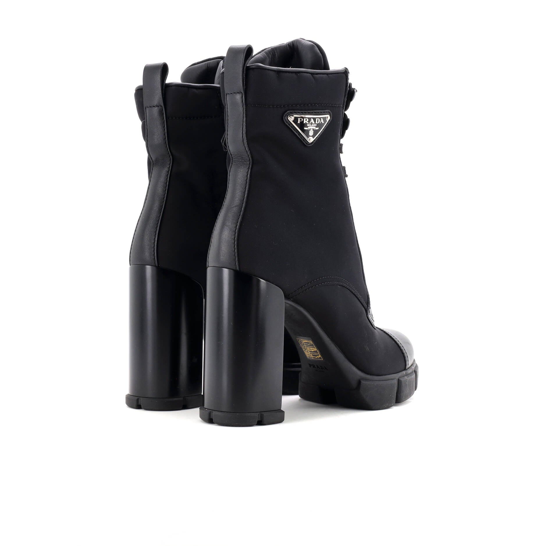 Model: Women's Triangle Logo Heeled Ankle Boots Nylon and Leather