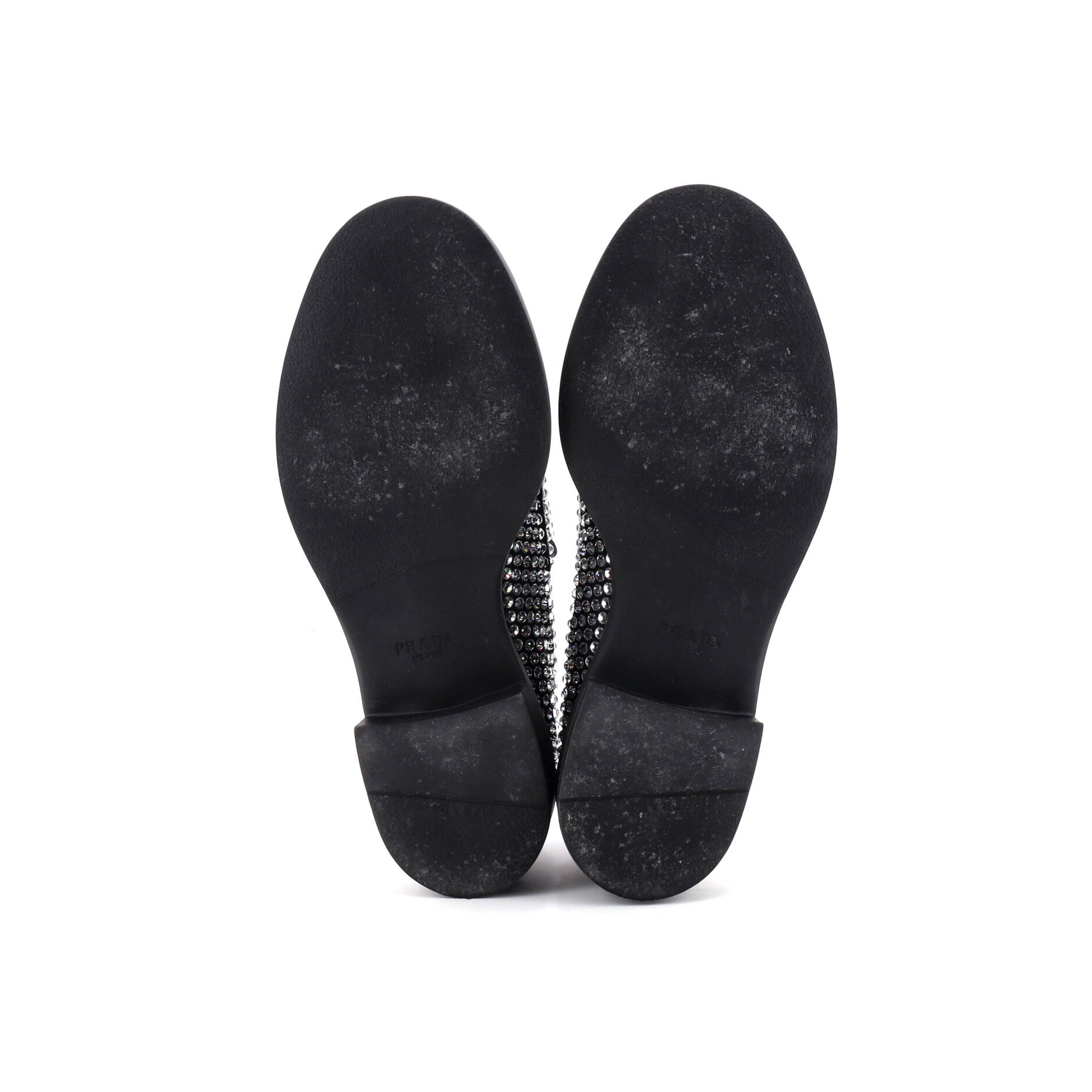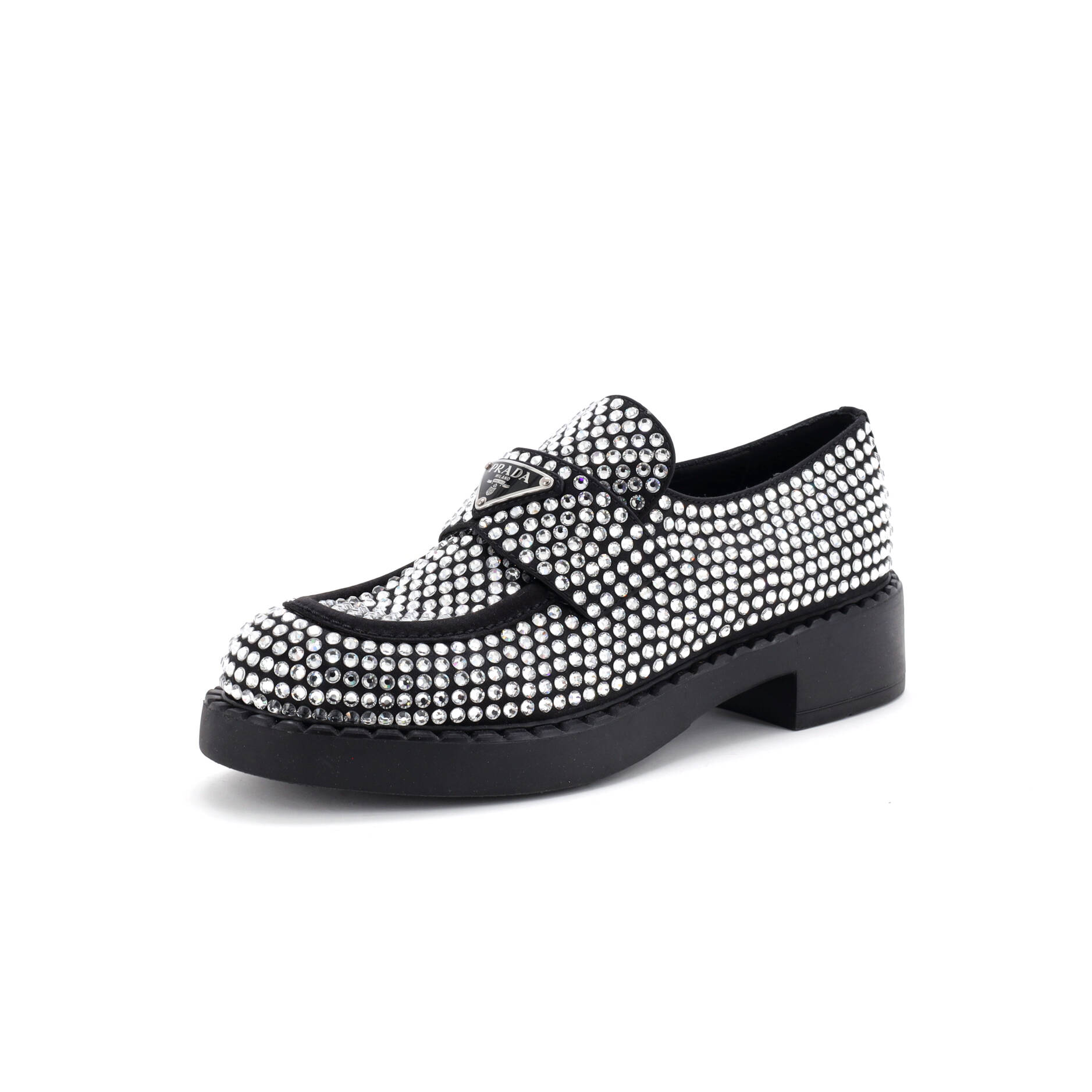 Model: Women's Triangle Logo Loafers Crystal Embellished Satin